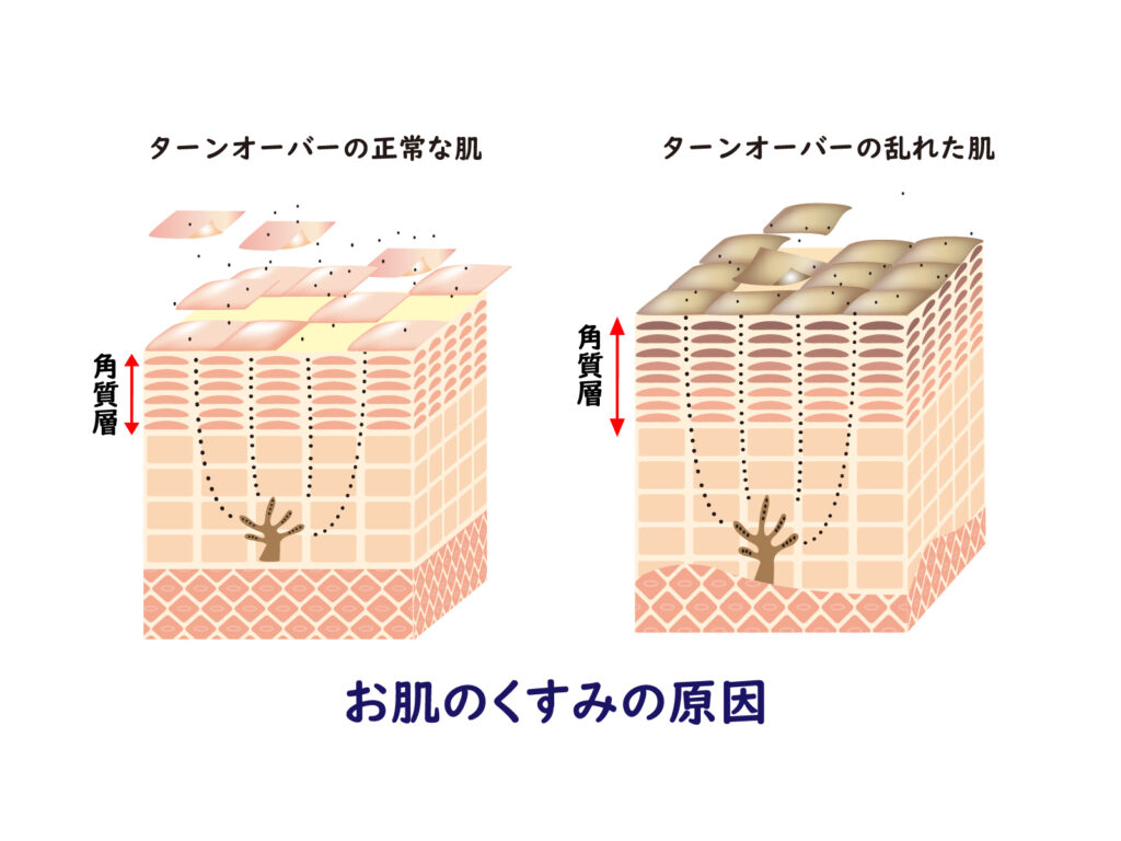 くすみとは、肌の明るさや透明感が失われ、顔全体が暗く見えてしまう状態をいいます。