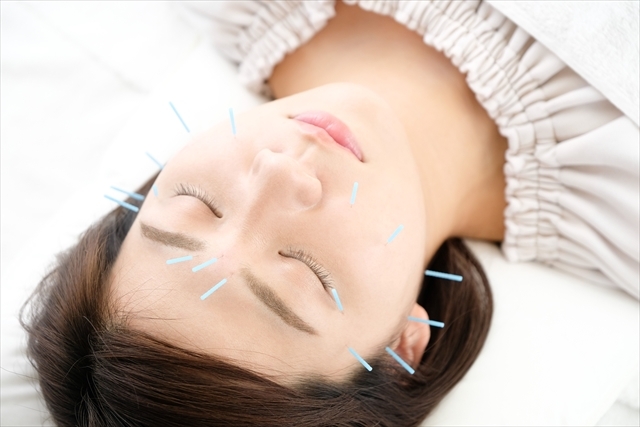 顔のツボを鍼で刺激します。少ない本数で負担やリスクを最小限に抑えます。